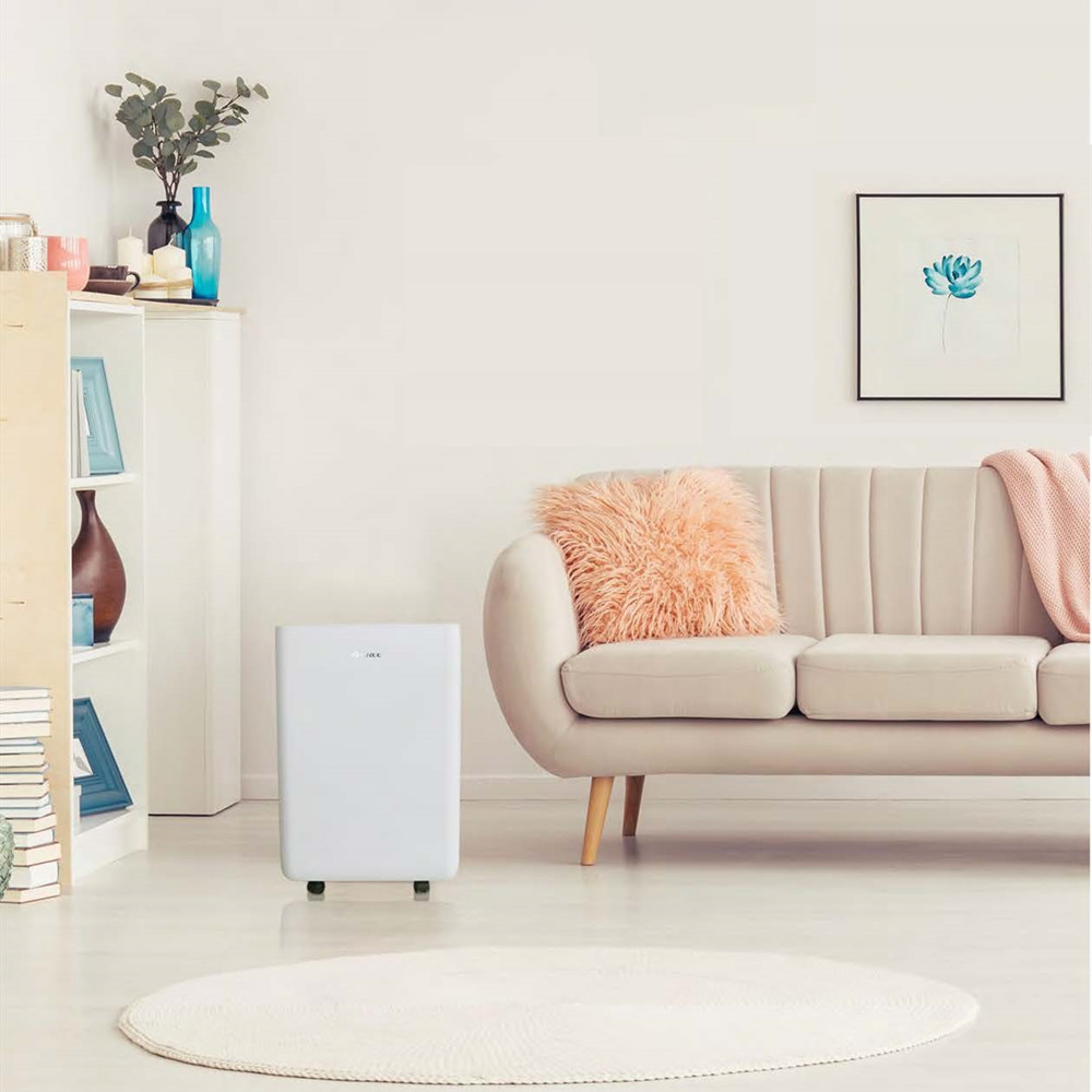 Gree Aovia 16 Luftentfeuchter (GDN16BE-K5EBA1A) zeichnet sich durch eine geringe Geräuschentwicklung und eine hohe Leistungsfähigkeit aus. Dieser Kondensat-Lufttrockner sorgt für eine angenehme Luftfeuchtigkeit und verhindert so Schimmelbildung, Kondensation und unangenehme Gerüche. Dieses Modell wurde verbessert und ist mit einer WLAN-Funktion ausgestattet. Die Bedienung erfolgt entweder direkt am Gerät oder mithilfe der integrierten WiFi-Verbindung über die GREE+ App. Zur Auswahl stehen ein AUTO-Modus und ein Wäschetrockner-Modus. Die Luftfeuchtigkeit lässt sich einfach über das elektronische Bedienfeld zwischen 30 % und 80 % einstellen. Ideal für Bereiche bis 75 m² mit einer Entfeuchtungsleistung von 16 Litern pro Tag. Der Luftentfeuchter ist einfach zu transportieren und passt dank seines modernen Designs hervorragend in Wohn- oder Schlafzimmer, Badezimmer oder Keller- und Hobbyräume. Das Kondensat kann entweder im integrierten Wassertank gesammelt oder direkt abgeleitet werden. Dank des umweltfreundlichen Kältemittels R290 ist er außerdem eine klimafreundliche Wahl. GREE - Loved by the World