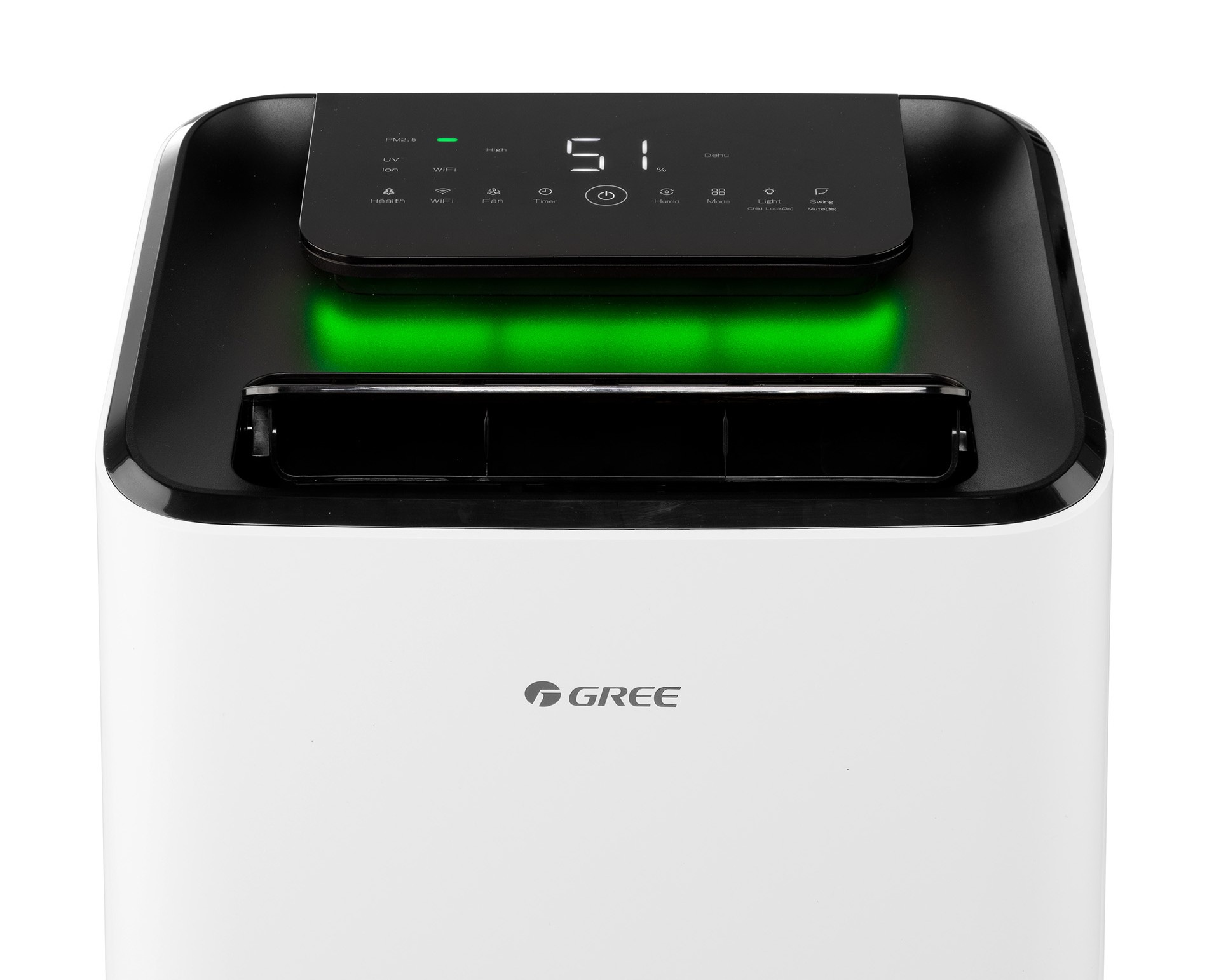 Gree Verti 30 Luftentfeuchter (GDN30BH-K5EBA1A) ist ein leistungsstarker und energieffizienter Lufttrockner und Luftreiniger. Dieses Gerät sorgt nicht nur für eine gesunde Luftfeuchtigkeit, sondern reinigt die Luft auch mithilfe eines integrierten Ionisators und UV-Licht (Health Taste). Zudem ermöglicht das integrierte WiFi (WLAN) eine einfache Bedienung und Überwachung auch auf Abstand (über die GREE+ App oder Ewpe Smart App). Gree Verti hat eine Entfeuchtungskapazität von 16 Liter/Tag und ist ideal für Bereiche bis 75 m². An der Oberseite des Kondens-Lufttrockners befindet sich ein übersichtliches, intuitives Display auf dem die Luftfeuchtigkeit in Echtzeitmessung angegeben wird und Sie das Gerät auch bedienen können. Weitere Ausstattungsmerkmale sind ein Wassertank mit einer Kapazität von 6,2 Litern, eine Zeitschaltuhr, ein Filter und eine Anschlussmöglichkeit für eine dauerhafte Entwässerung. Dank des umweltfreundlichen Kältemittels R290 ist er außerdem eine klimafreundliche Wahl. GREE - Loved by the World
